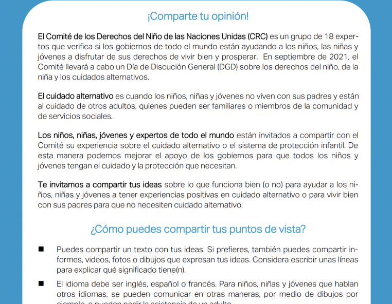 El Comité de los Derechos del Niño de la ONU decidió dedicar su Día de Debate General 2021 al tema de «los derechos de la infancia y el cuidado alternativo». El debate se llevará a cabo durante dos días, el jueves 16 y el viernes 17 de septiembre de 2021, durante la sesión del Comité, que se celebrará en Ginebra. El… -