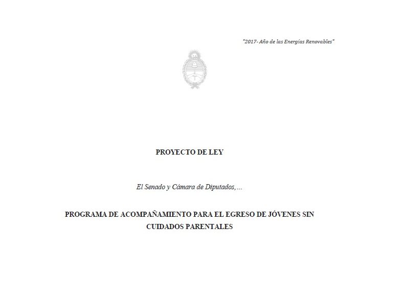 La presente ley tiene por objeto la creación del Programa de acompañamiento para el Egreso de Adolescentes y Jóvenes sin Cuidados Parentales a fin de garantizar su plena inclusión social y su máximo desarrollo personal y social. Ley completa –>Ley de acompañamiento Argentina